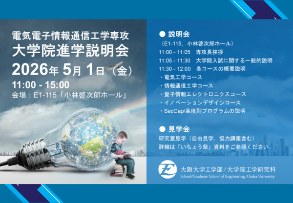 - 2026/04/24 イベント 2026.5.1[金]電気電子情報通信工学専攻 大学院進学説明会開催