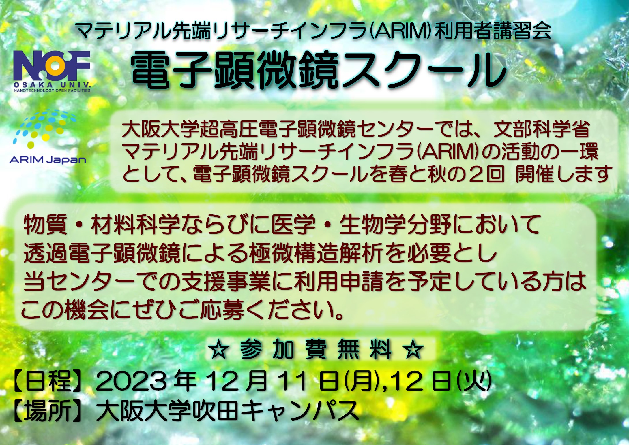 【申込方法】電子メールにて、件名を「スクール参加申込」として、arim(at)uhvem.osaka-u.ac.jp まで申込書をお送りください