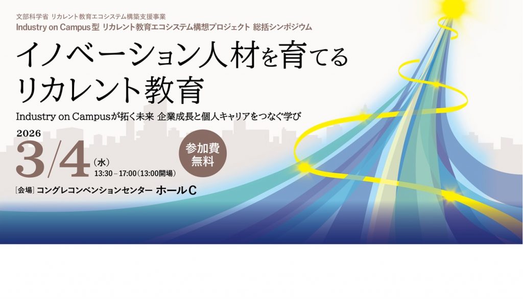 その中で、本事業の総括シンポジウムとして「イノベーション人材を育てるリカレント教育」を開催いたします。