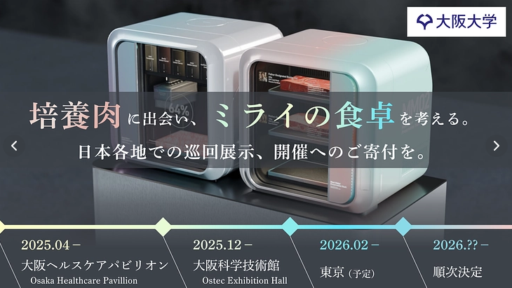 大阪大学工学研究科は、運営パートナーとして参画している「培養肉未来創造コンソーシアム」が2025年日本国際博覧会の大阪ヘルスケアパビリオンで協賛した「家庭で作る霜降り肉」ブースの内容を、全国の科学館で再現するプロジェクトを実施するため、2025年12月12日(金)より、クラウドファンディングを立ち上げます。