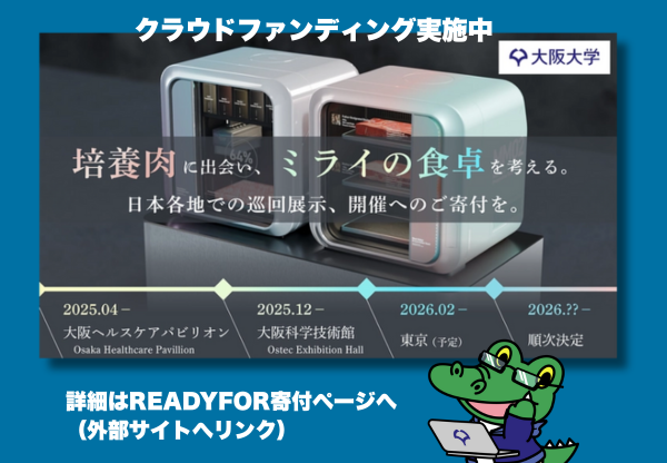 大阪大学工学研究科が運営パートナーとして参画している「培養肉未来創造コンソーシアム」が2025年日本国際博覧会の大阪ヘルスケアパビリオンで協賛した「家庭で作る霜降り肉」ブースの内容が、12月上旬より大阪科学技術館にて期間限定で展示されています。