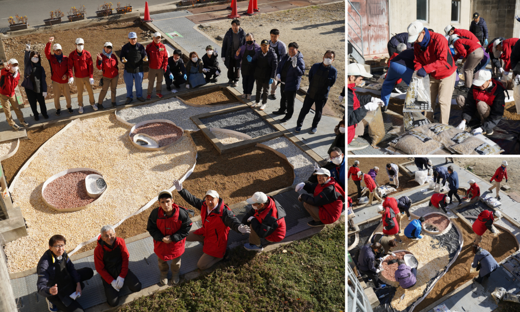 今回の活動は前半・後半の2日間に分けて実施し、前半の12月15日(月)はDIYによる庭づくりを実施しました。当日は天候に恵まれ、色付きの砂利を用いたおしゃれな庭が完成しました。