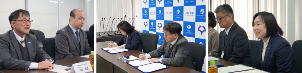 1月9日(金)に大阪大学にて連携協定調印締結式を開催し、連携協定による目的達成を目指した取り組みについて協議を行いました。締結式では、今回の締結にあたってのコミットメントが示されるとともに、今後の連携・協力に向けた意見交換を行いました。