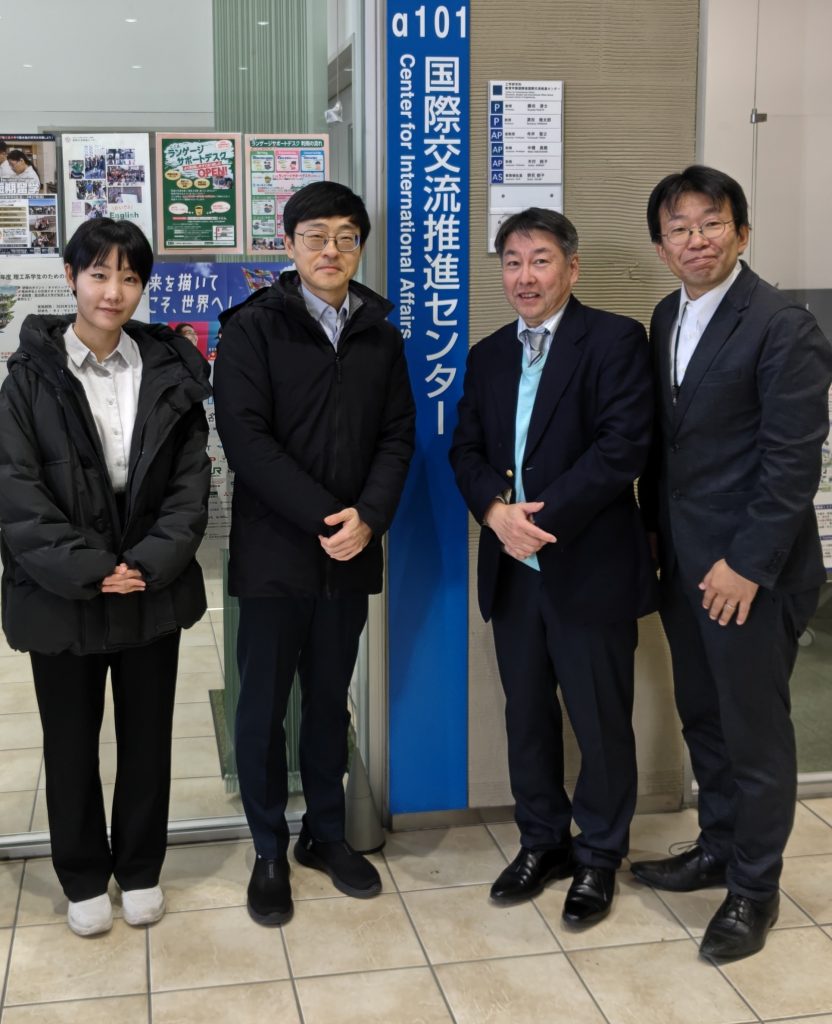 2026年1月22日(木)、韓国の高麗大学大学院入試チームのキム・ジェフィ ジェネラルマネージャーとヤン・ウンビンさんが本学国際交流推進センターを表敬訪問しました。国際交流推進センターの寺井智之准教授と新しい奨学金について意見交換をしました。