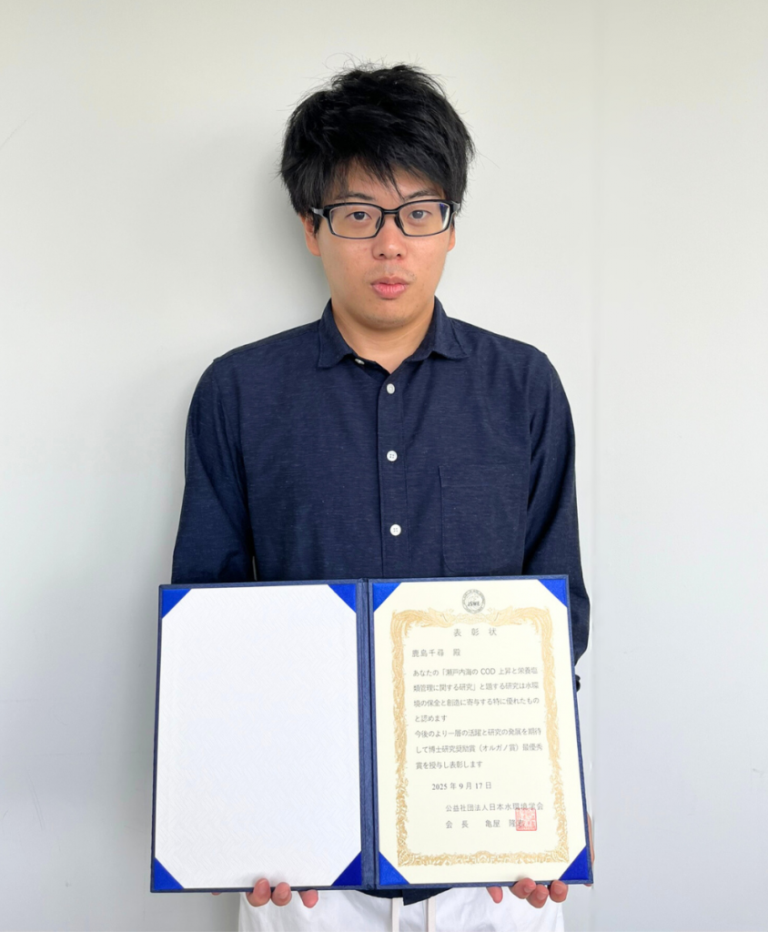 研究成果 鹿島千尋特任研究員が日本水環境学会シンポジウムで博士研究奨励賞(オルガノ賞)最優秀賞を受賞しました