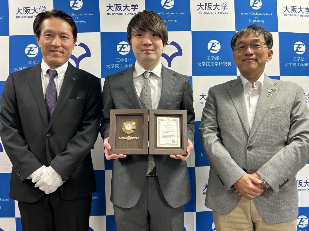 電気電子情報通信工学専攻の高橋秀実助教の研究課題が、マツダ財団 2025年度の研究助成に採択され、2025年10月28日、工学研究科キャンパスにおいて、大政健史工学研究科長も出席のもと、訪問贈呈式が行われました。