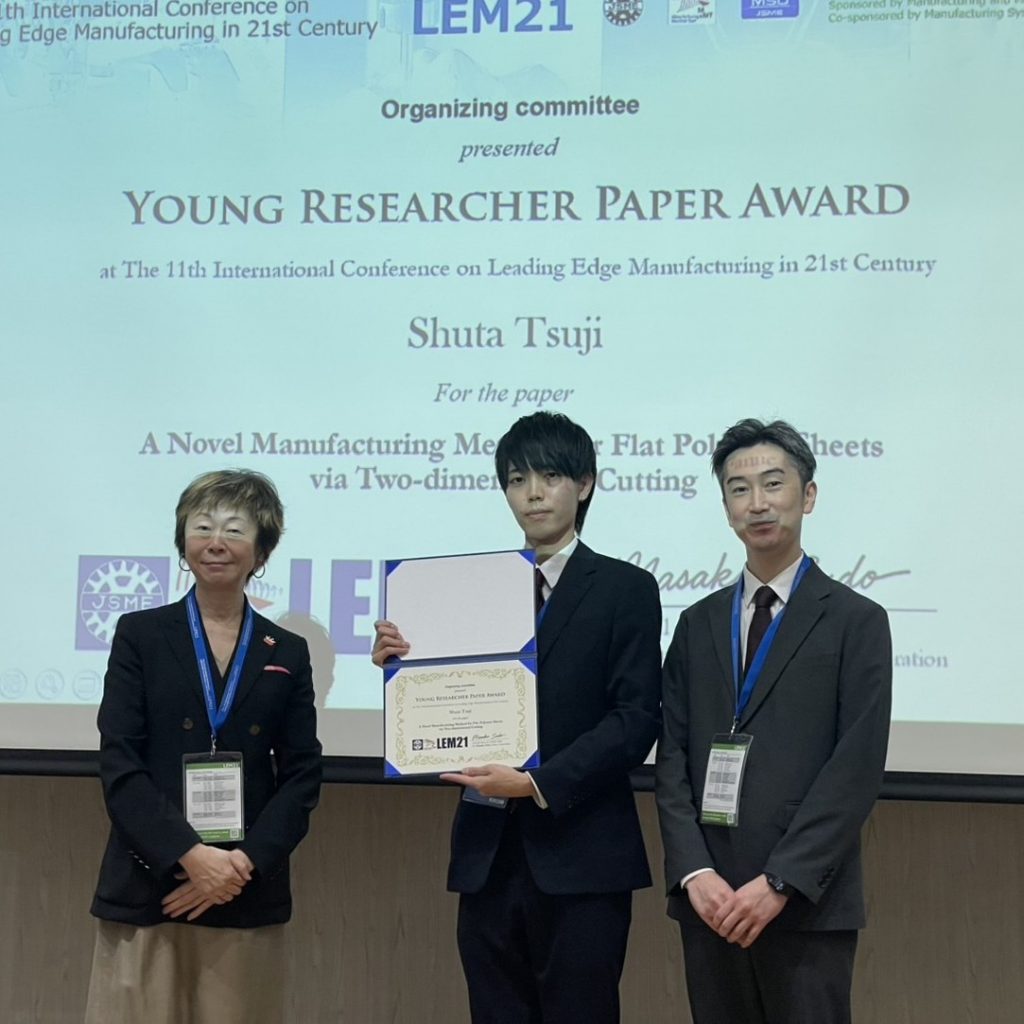機械工学専攻 博士前期課程の辻柊太さん(榎本・杉原研究室所属)が、The 11th International Conference on Leading Edge Manufacturing in 21st Century (LEM21) において「Young Researcher Paper Award」を受賞しました。