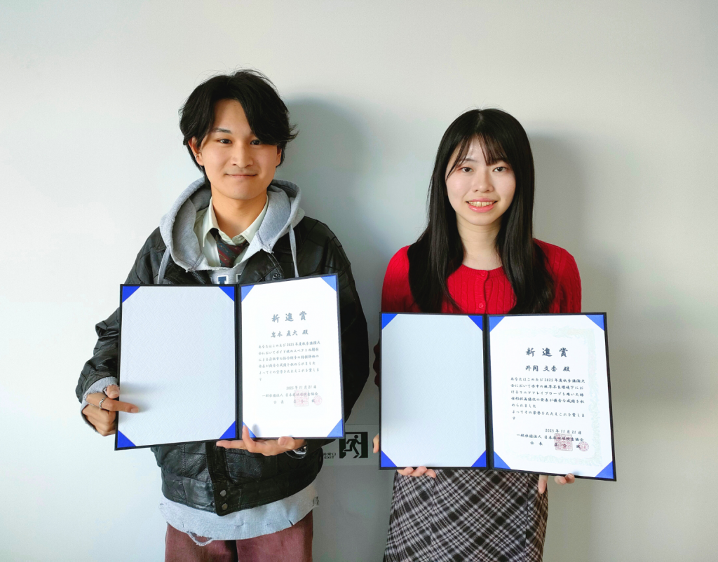 機械工学専攻 博士前期課程の岩本直大さん、井関文香さんが、日本非破壊検査協会 新進賞を受賞しました。