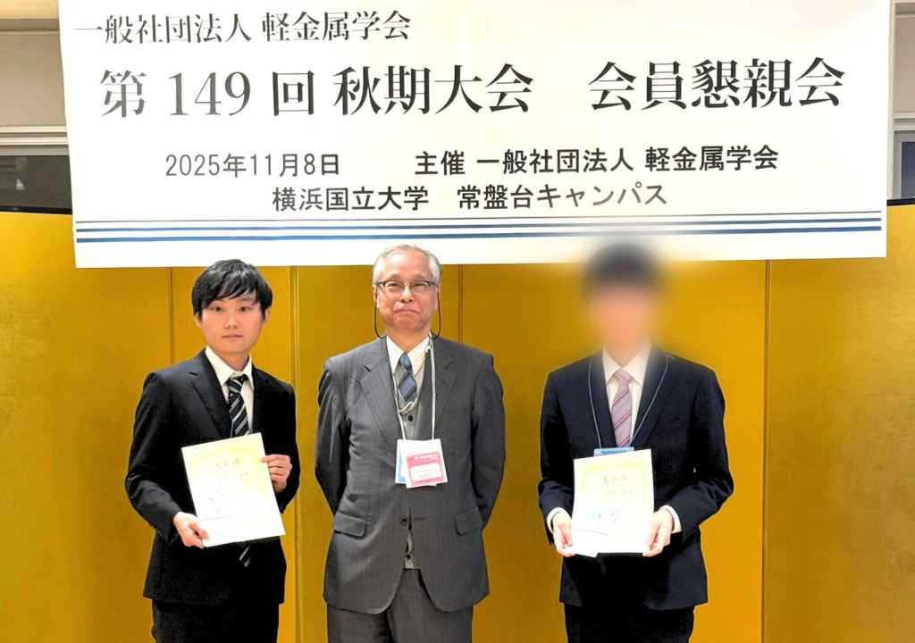 本賞は11月8日に横浜国立大学常盤台キャンパスにて実施された「軽金属学会第149回秋期大会ポスターセッション」における発表のうち、特に軽金属の溶接・接合に関わる優秀な発表に対して一般社団法人 軽金属溶接協会より贈られるものです。